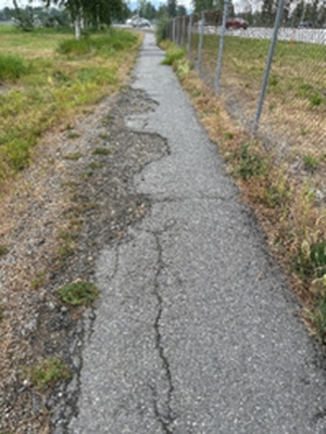 All three of the locations within the project have damaged asphalt with transverse cracks growing vegetation. Additionally, portions of the Steese Highway path were built to now outdated standards and therefore are below the recommended width for shared-use paths, ranging from 5 to 7.5 feet in width.